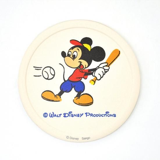 野球を楽しむレトロなミッキーが描かれた優れものの吸水コースター。