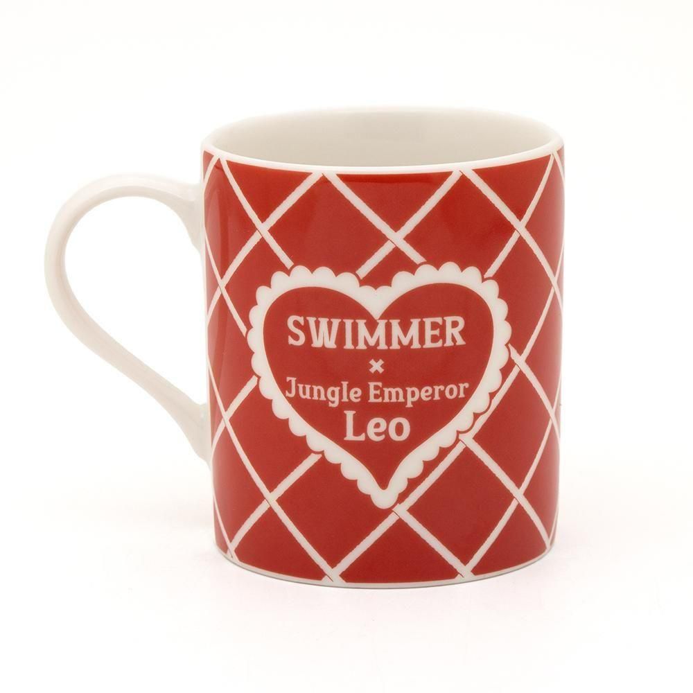 SWIMMERのレトロでかわいいタッチで描かれたレオとライヤのマグカップです。