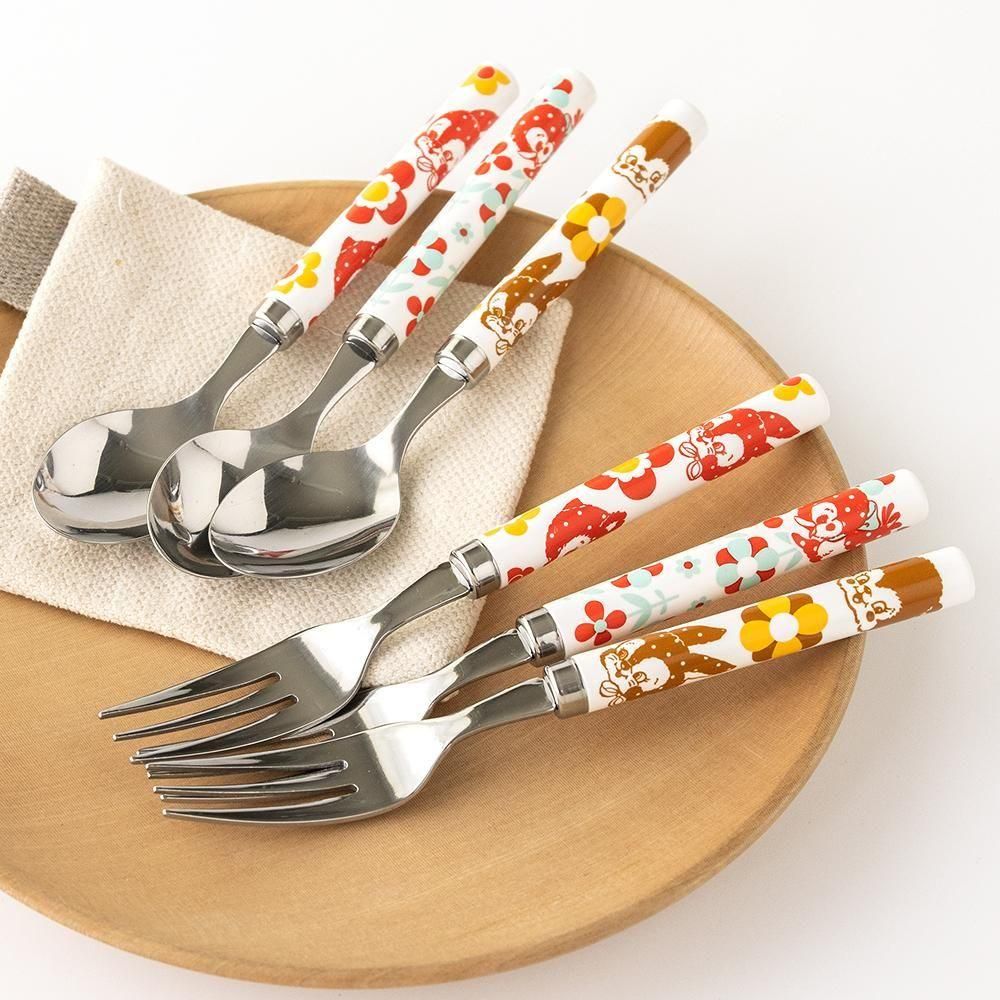 柄の部分にかわいい動物やお花がぐるりと描かれた楽しいデザイン。