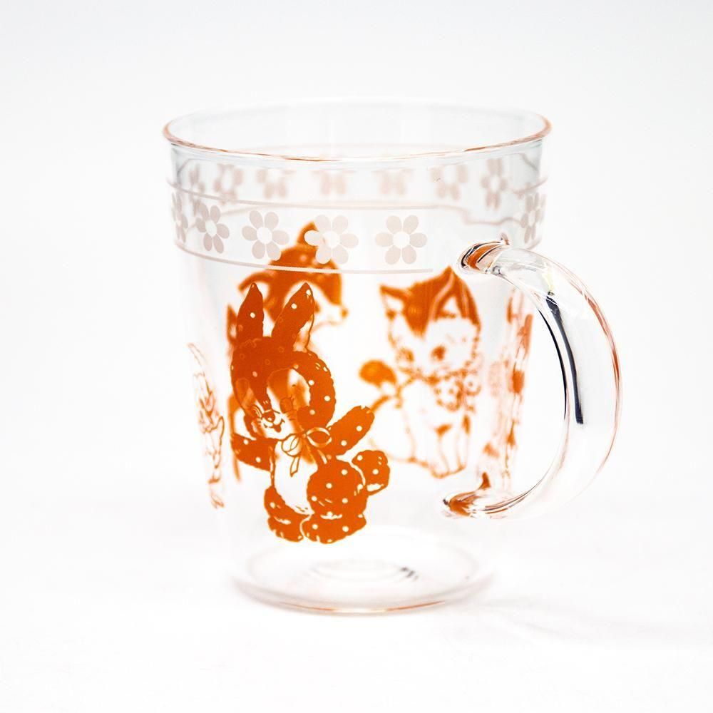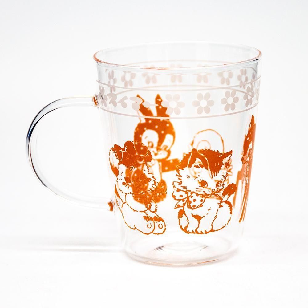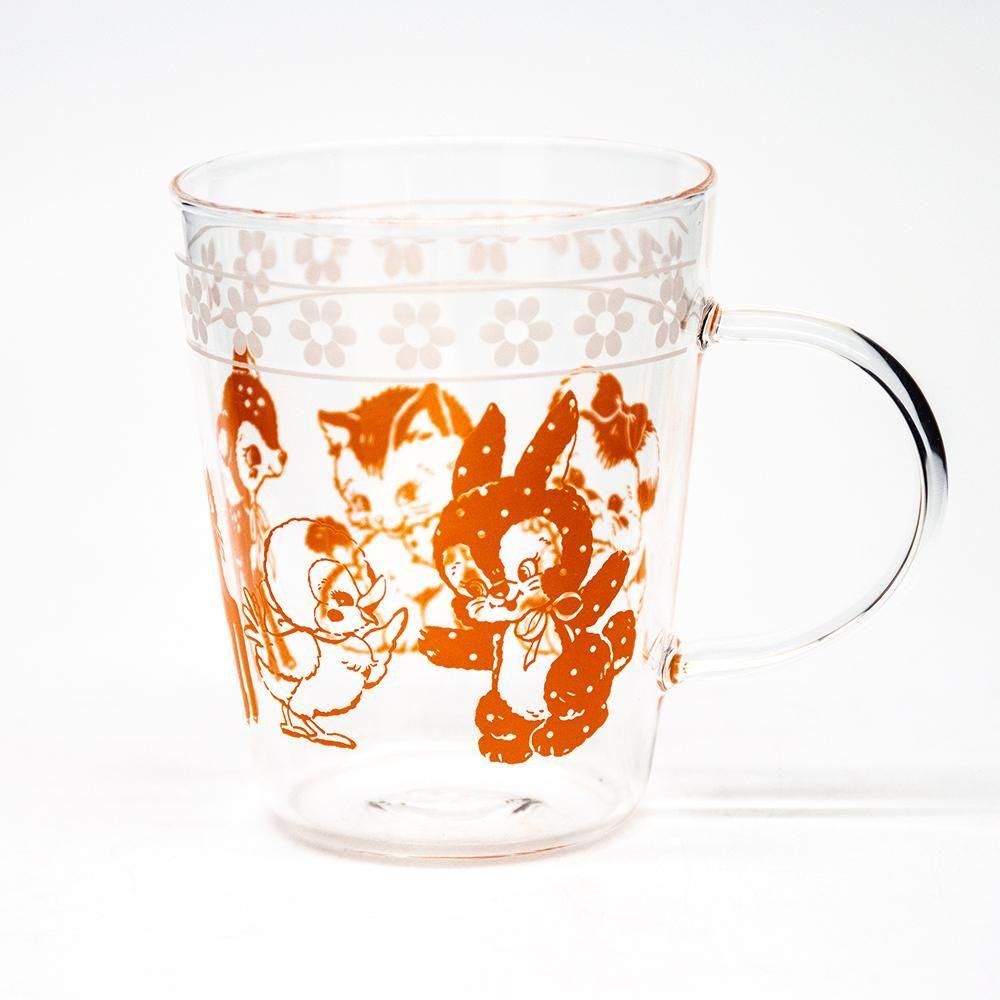レトロで愛らしい動物たちの耐熱ガラスマグ。