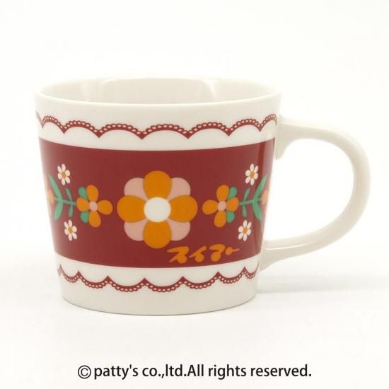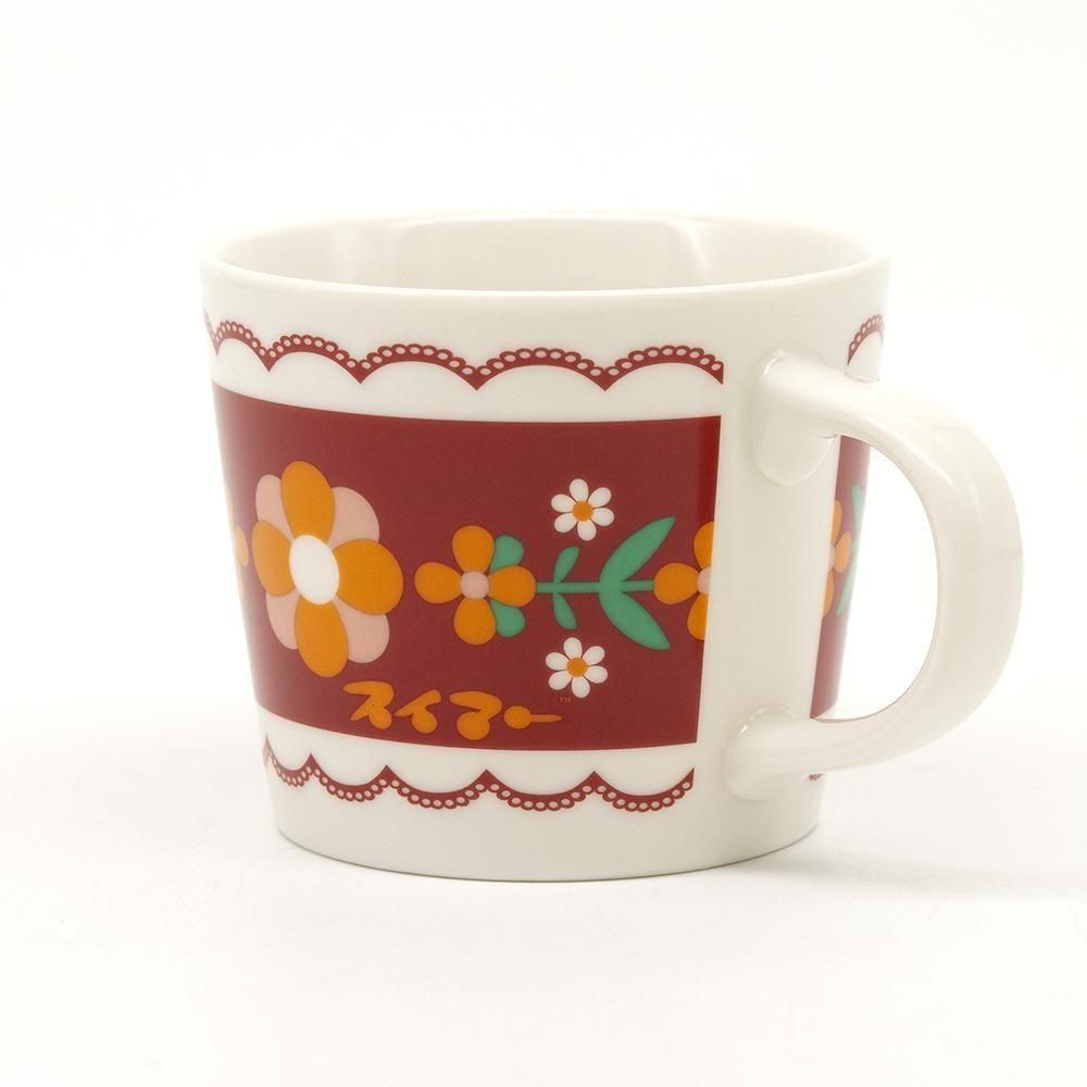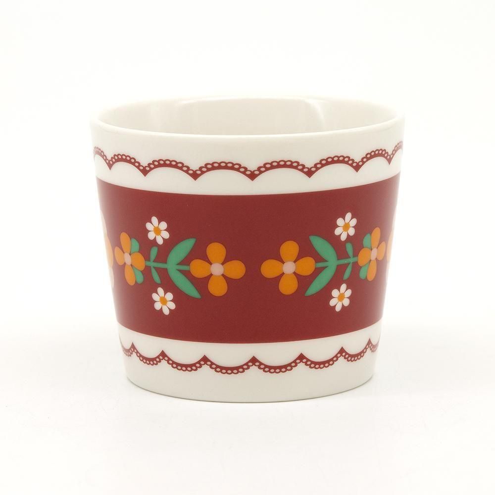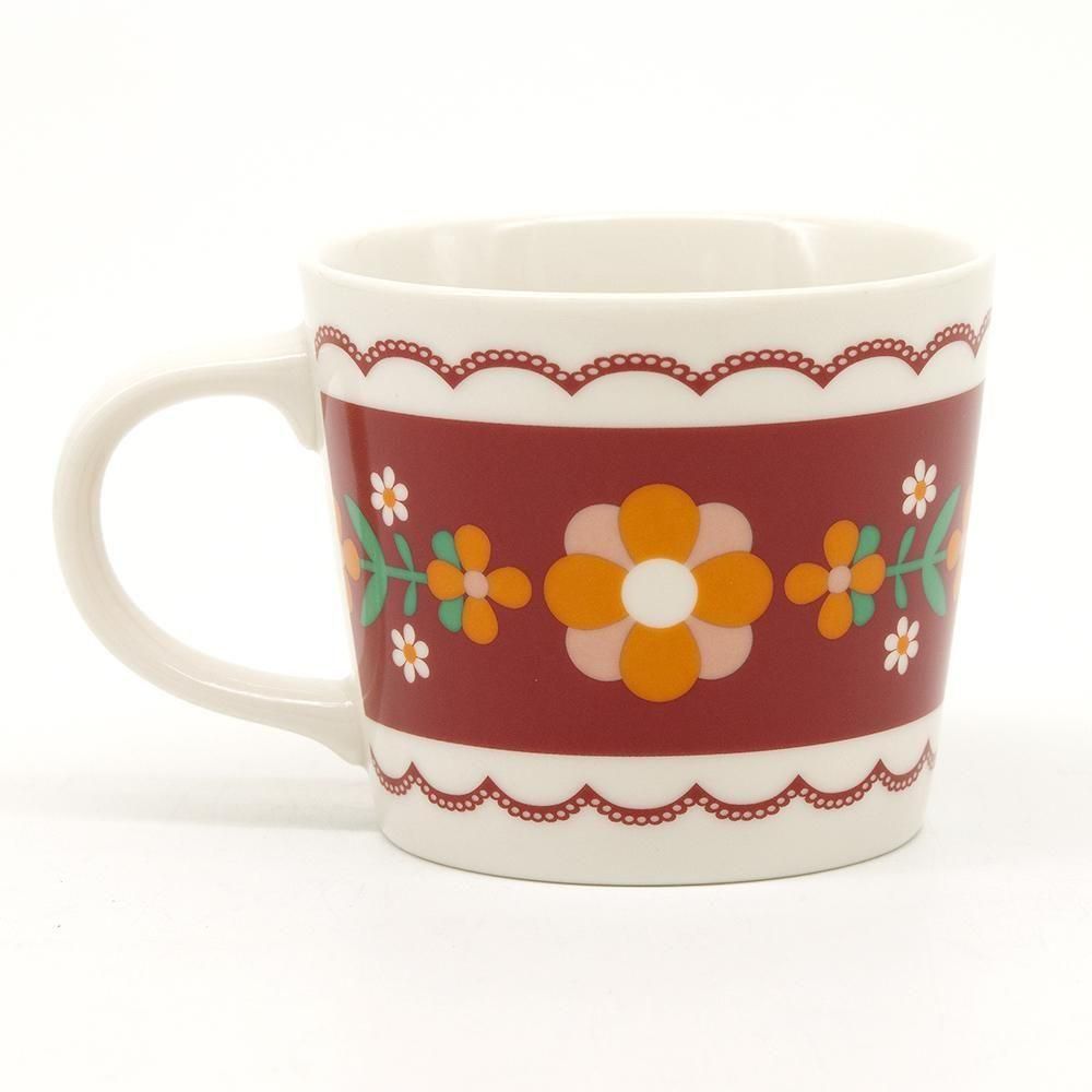 チロリアンテープのようなデザインがレトロでかわいいスープマグです。
