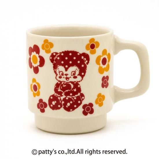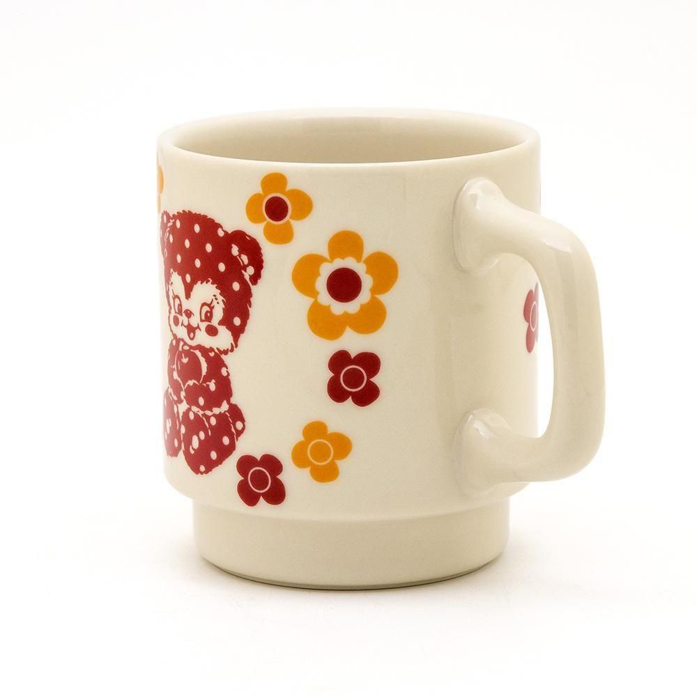 レトロタッチの水玉模様のクマと、お花が愛らしいスタッキングマグです。