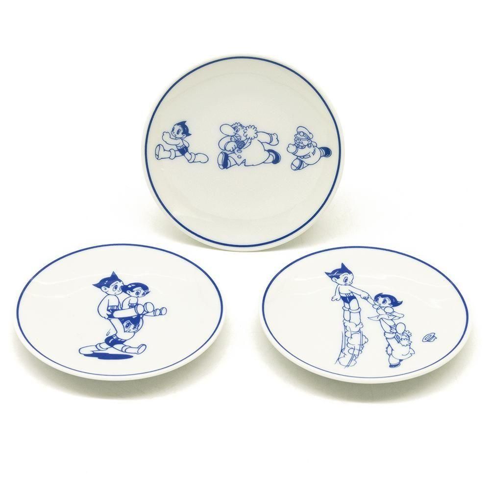 アトムのマンガの世界を楽しめるすっきりとした染付風の和食器。