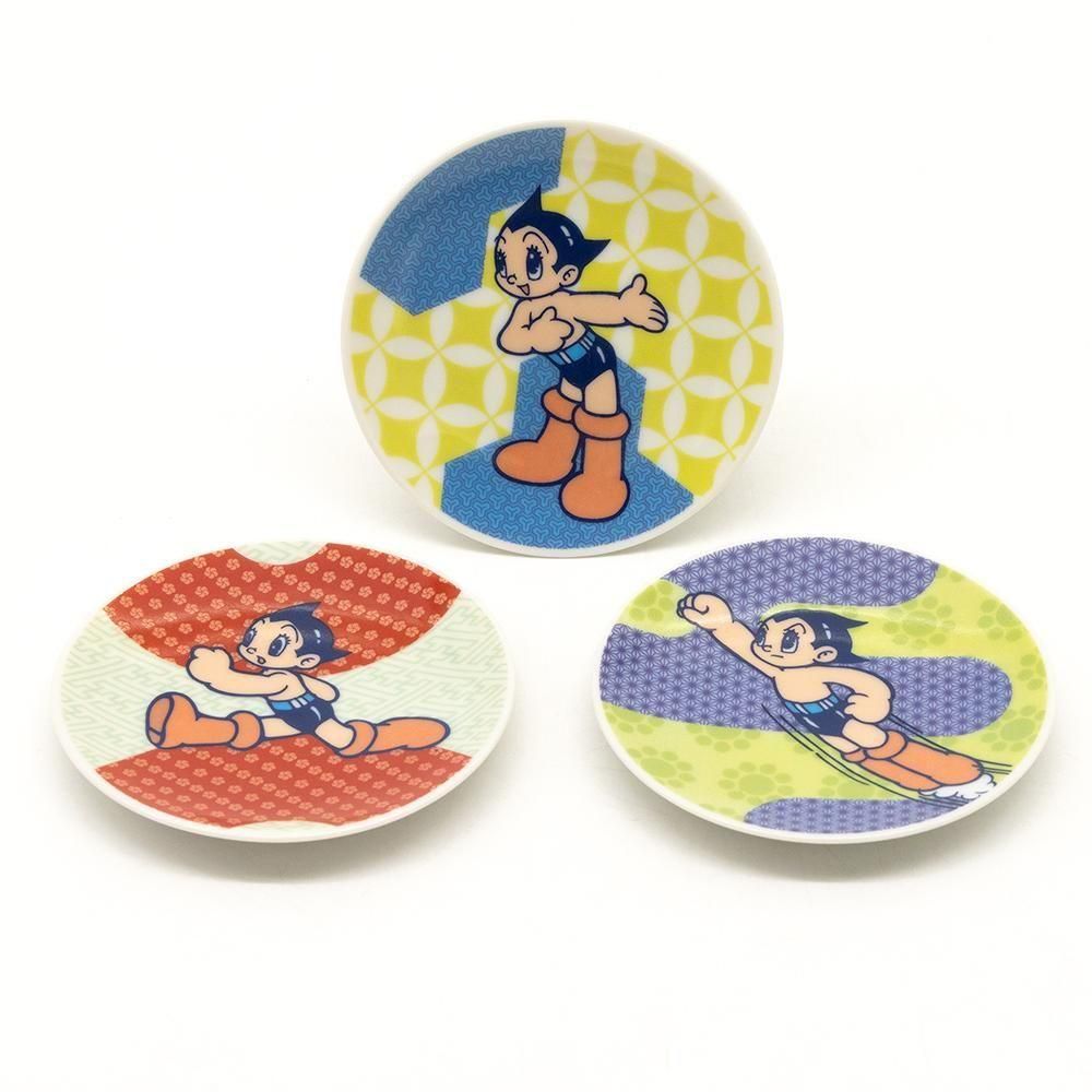 愛らしいアトムがカラフルな和柄とマッチした和食器。