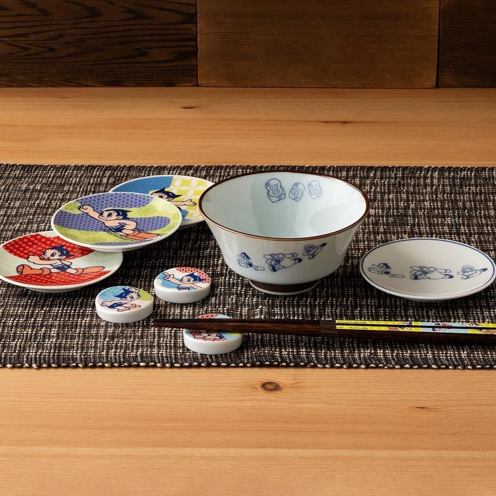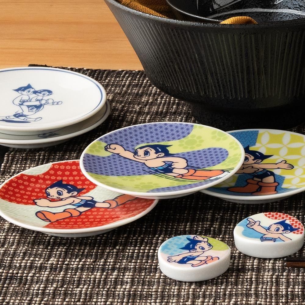 愛らしいアトムがカラフルな和柄とマッチした和食器。