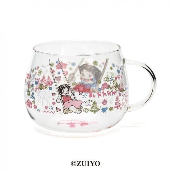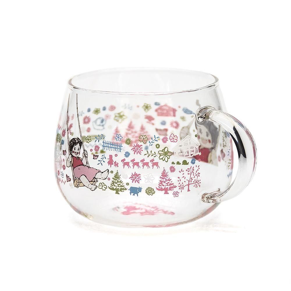 ハイジにピッタリのコロンと丸みのある耐熱のガラス製マグカップ。
