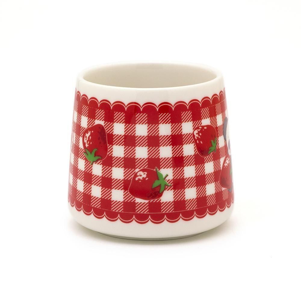 かわいいキャラクターと真赤ないちごが並んだ、